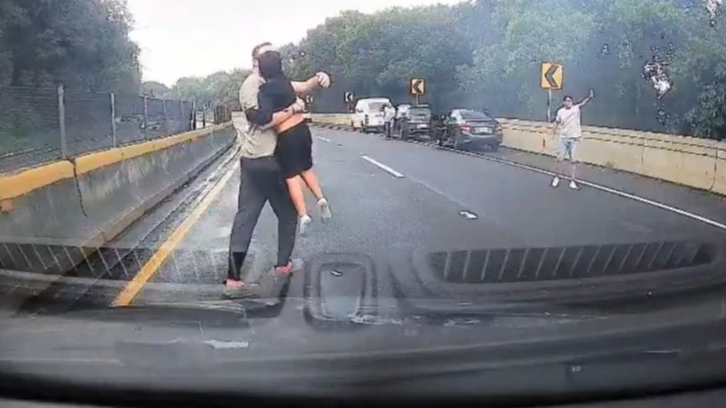 En un video compartido por Noroña, se observa a González rescatando a un niño de una camioneta volcada en una autopista.