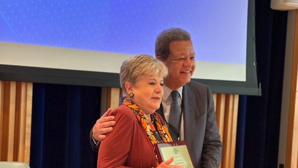El reconocimiento fue entregado por el expresidente de la República Dominicana y presidente de Funglode, Leonel Fernández, quien destacó la trayectoria de Bárcena y sus aportes al desarrollo sostenible, la integración regional, la consolidación de la paz y el bienestar humano.