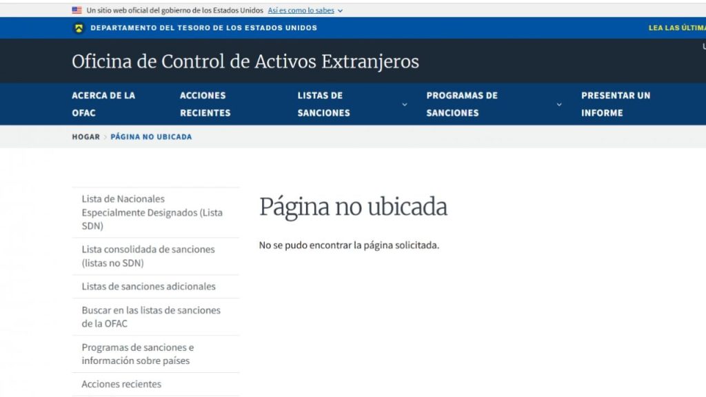Tras la polémica, en la página oficial aparece el mensaje “Página no ubicada. No se pudo encontrar la página solicitada”.
