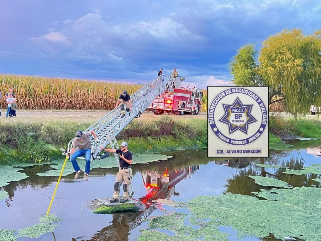 Cuauhtémoc, Chih.- La tarde de este miércoles 1 de octubre, elementos de la Policía Seccional de Álvaro Obregón y del Cuerpo de Bomberos recuperaron un vehículo que se encontraba completamente sumergido en un sistema de riego en la brecha número 200, a la altura del kilómetro 1, tramo que conecta el campo menonita 101 con el 107.