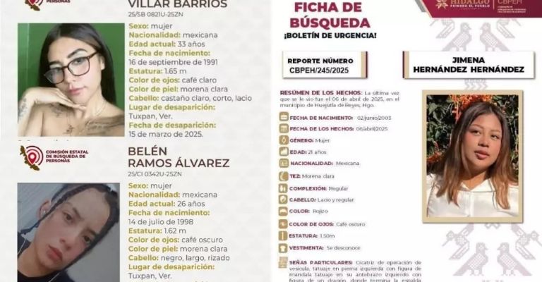 En el predio se recuperaron, en las últimas dos semanas, los cuerpos de Belén Ramos Álvarez, de 26 años, originaria de Tuxpan; Xóchitl Ivette Villar Barrios, de 33 años, también de Tuxpan; y Jimena Hernández Hernández, de 21 años, de El Arenal, Huejutla, Hidalgo, todas ellas reportadas como desaparecidas.