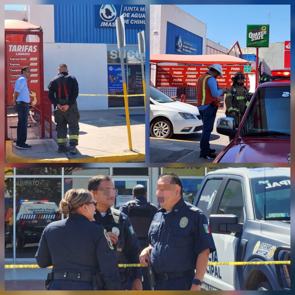 H. Ciudad de Chihuahua, Chih.-Una intensa movilización de cuerpos de emergencia se registró en la sucursal de la Junta Municipal de Agua y Saneamiento (JMAS), ubicada en Plaza Vallarta, tras el reporte de un fuerte olor a gas en la zona.