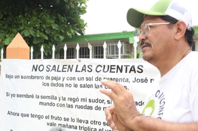 “Es como si no quisieran que sembráramos más, amigo. Y como los precios se están viniendo para abajo, nos estamos descapitalizando. No recibimos ni un centavo para sembrar, no a la cosecha, y a lo largo de tres años hay deudas, y es una promesa, no un apoyo”.