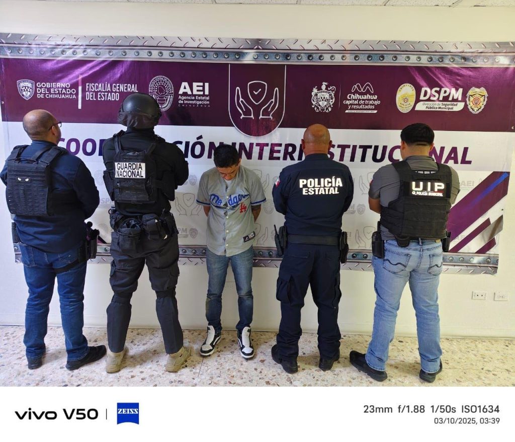 El operativo interinstitucional se desarrolló el pasado jueves 2 de octubre, en las calles 29 y Diego Lucero de la colonia División del Norte de la ciudad de Chihuahua, en donde se detuvo a quien se identificó como Cesar Eduardo S.R., de 34 años de edad.