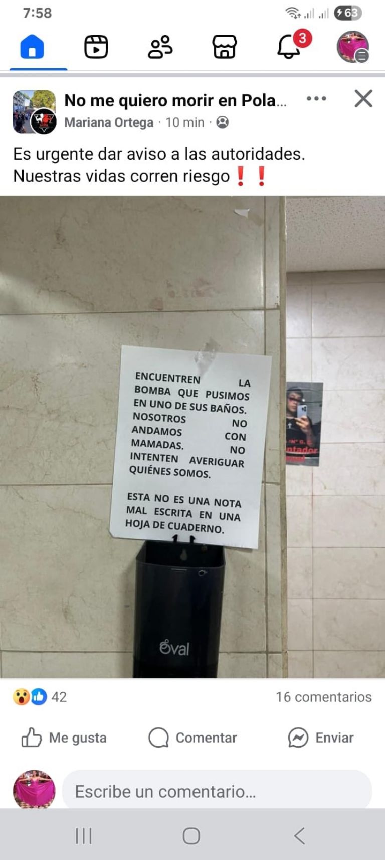 En un baño del Edificio A fue hallado un cártel que advierte sobre un artefacto explosivo dentro de las instalaciones educativas.
