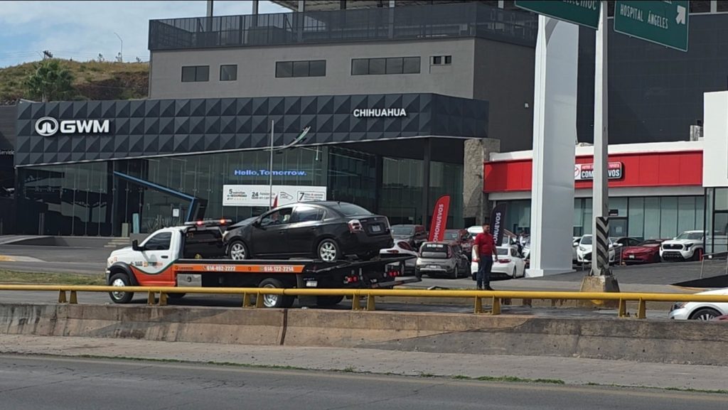 H. Cd. De Chihuahua.- Una fuerte fuga de agua registrada esta mañana en el Periférico de la Juventud, a la altura de la agencia Toyota, provocó un accidente vehicular que dejó a una persona lesionada.
