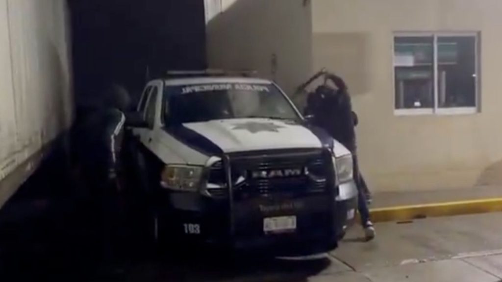 Con las armas, también habían roto el parabrisas y los cristales tanto de piloto como del copiloto de la unidad municipal. Sobre el cofre, dejaron una manta que igualmente fue colocada en otras partes del municipio. En ella, se dirigen a la presidenta Tania Valdez Cuellar y a su jefe de la policía Isidoro Roa Arvizu: “cumplan con los acuerdos pagados y los acuerdos que se hicieron en campaña”, dice, además de acusar presuntos actos de corrupción.