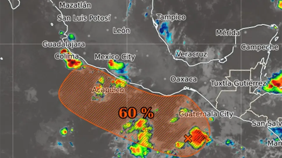 El Servicio Meteorológico Nacional (SMN) informó que la zona de baja presión localizada a 420 kilómetros al sur de Bahías de Huatulco, Oaxaca, mantiene un 60% de probabilidad para desarrollo ciclónico en siete días, y podría evolucionar al ciclón tropical Sonia en los próximos días. El promedio histórico apunta a que este sistema podría ser uno de los últimos de 2025.