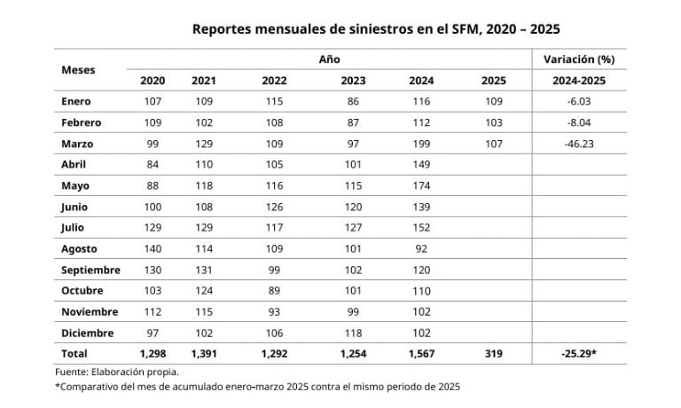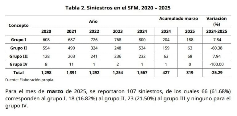 Los siniestros referentes a seguridad operativa fueron 319 entre enero y marzo últimos, y mostraron un decremento de 25.29% en relación con el mismo periodo de 2024.