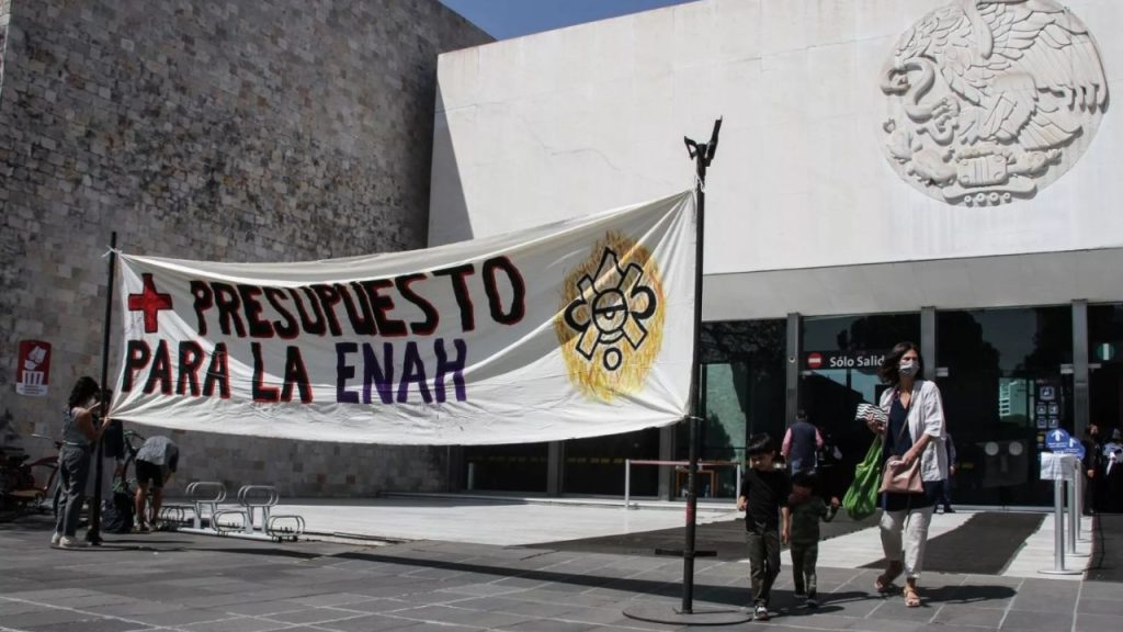 CIUDAD DE MÉXICO (apro).- El miércoles 15 de octubre un grupo de estudiantes de la Escuela Nacional de Antropología e Historia (ENAH) llevó a cabo una manifestación pacífica en el Museo Nacional de Antropología e Historia, ubicado sobre Paseo de la Reforma, de la alcaldía Miguel Hidalgo.