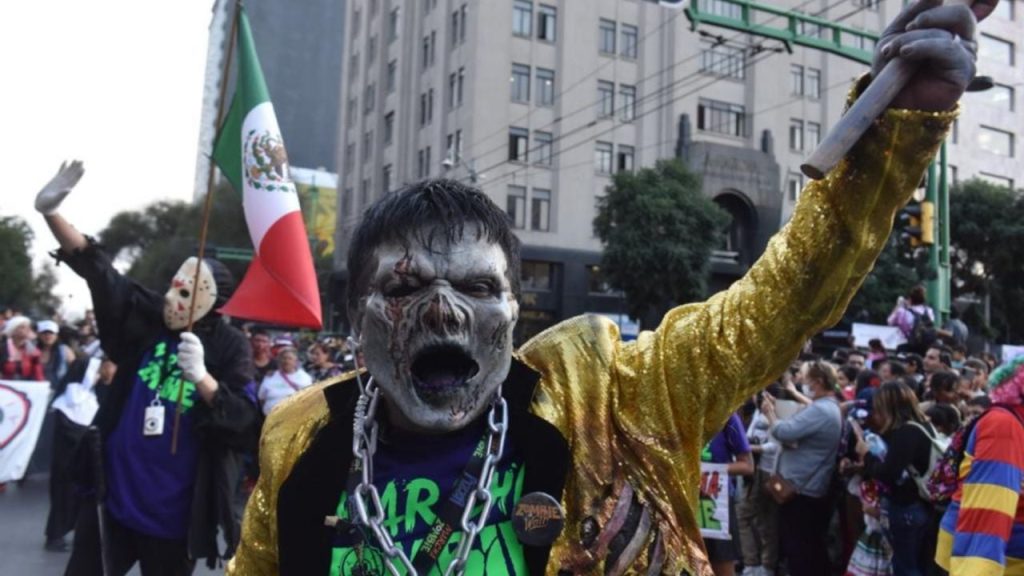 CIUDAD DE MÉXICO (apro).— La Marcha Zombie regresa al Centro Histórico este sábado 18 de octubre con salida desde el Monumento a la Revolución y llegada al Zócalo capitalino. La concentración inicia desde la mañana; el arranque del contingente está programado a las 16:00 horas. A lo largo del día se realizan actividades previas de caracterización y el tradicional baile de Thriller.