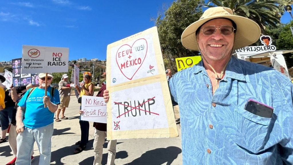 BAJA CALIFORNIA (apro).- Con un marcado rechazo a las redadas contra inmigrantes y lo que llamaron “dictadura fascista”, ciudadanos estadunidenses radicados en Baja California se sumaron a las protestas globales de “No Kings” (No Reyes) en contra del presidente de los Estados Unidos Donald Trump.