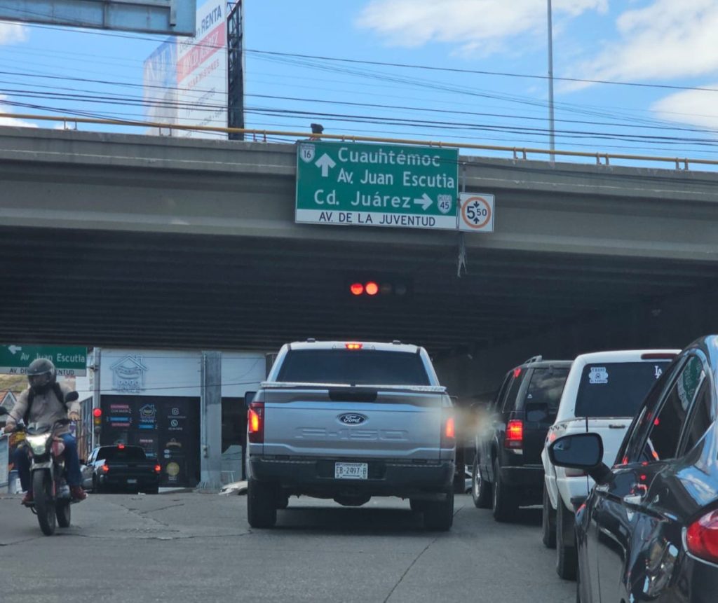 Sin importar el reglamento de tránsito, la unidad Ford F150, estuvo esperando el semáforo al igual que el resto de los conductores, esperando a salir del lugar, lo que generó la inconformidad de los conductores que pasaban por el lugar y que no podían circular porque el conductor de la unidad se encontraba esperando el semáforo en sentido contrario.