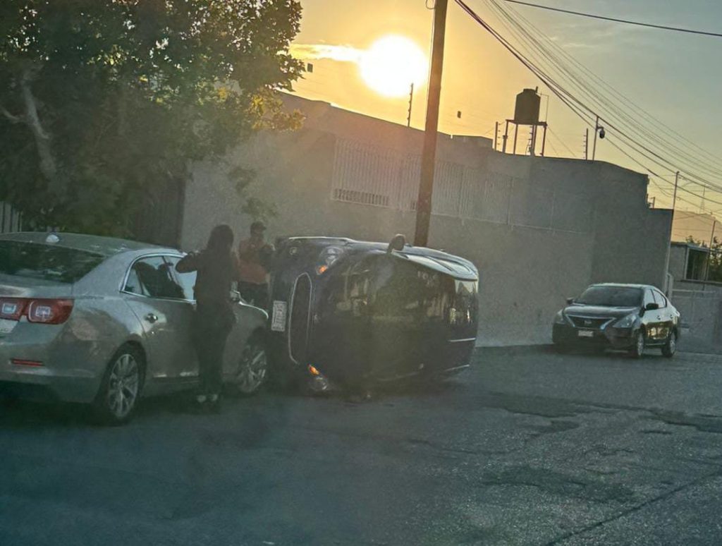 H. Cd de Chihuahua.- Automovilistas que circulaban por la intersección de la Deza y Ulloa, a la altura de la Sección 42 del SNTE en San Felipe, reportaron un choque que terminó en volcadura.