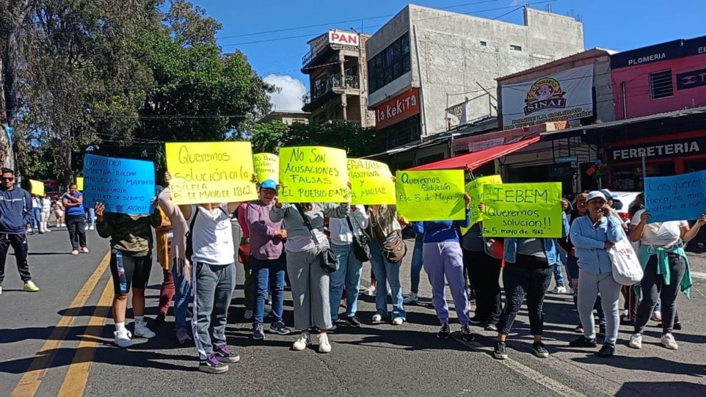 “Estamos apoyando a nuestro pueblo y a los padres de familia de la escuela 5 de Mayo. Lo único que pedimos es una solución concreta. Hemos hablado con personal del IEBEM, pero no nos han dado respuesta. Ya hubo acuerdos, pero no los han cumplido”, señaló un representante de la Unidad Popular durante la manifestación.