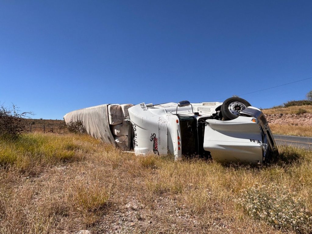 La tarde de este lunes se registró la volcadura de un tráiler cargado con pacas de algodón sobre la carretera libre Chihuahua–Juárez, a la altura del kilómetro 6, en el tramo conocido como Las Curvas del Perico, en sentido norte–sur.