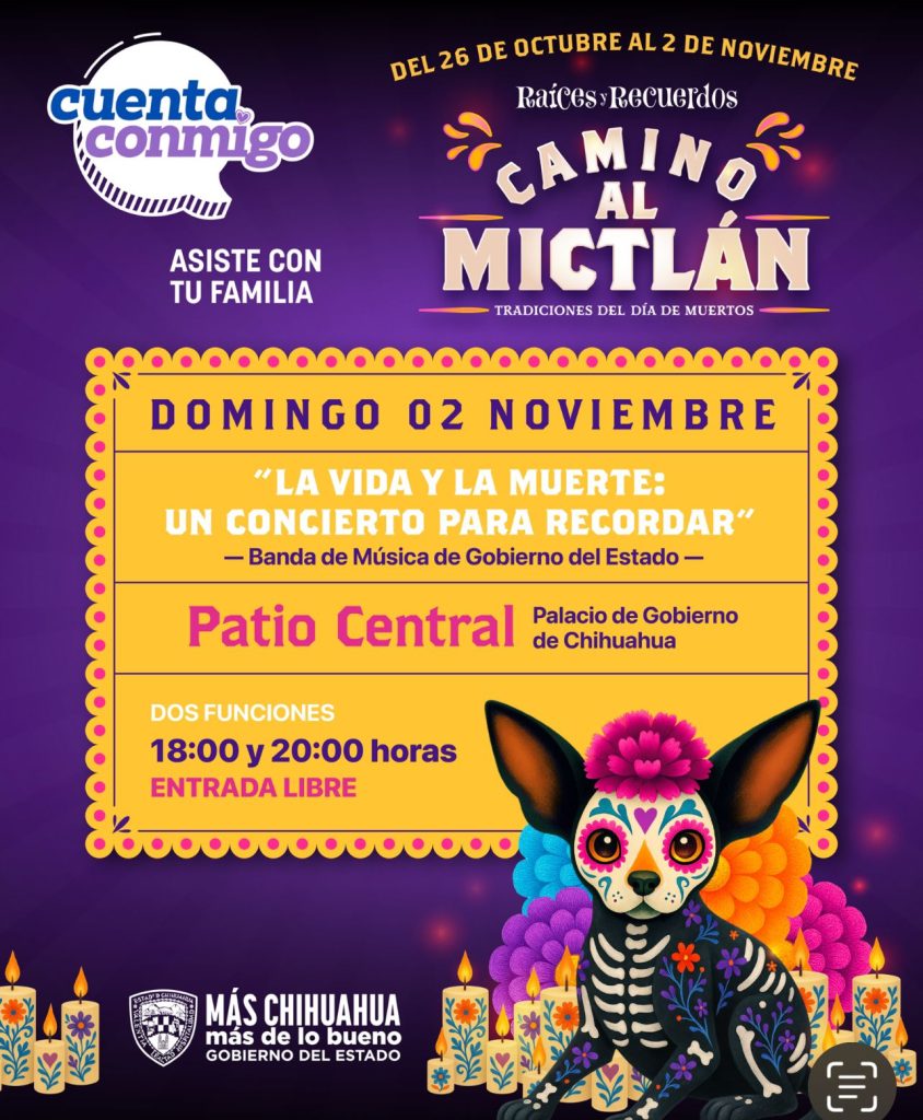 El domingo 2 de noviembre, la Banda de Música de Gobierno del Estado presentará “La vida y la muerte: un concierto para recordar”, también a las 18:00 y a las 20:00 horas.