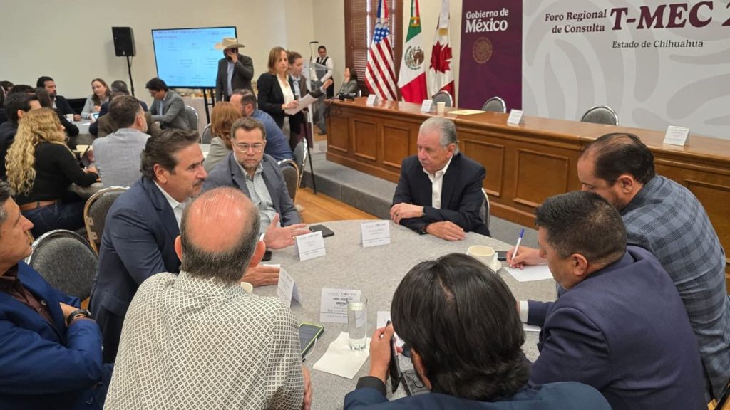 H. Cd de Chihuahua.- Representantes de los empresarios de Chihuahua se reunieron con autoridades del Estado y del Gobierno Federal para revisar el Tratado entre México, Estados Unidos y Canadá (TMEC). En el encuentro participaron organismos como Coparmex, Canacintra, Index, Consejo Estatal Agropecuario de Chihuahua, Cluster Minero de Chihuahua y representantes Unifrut, entre otros.