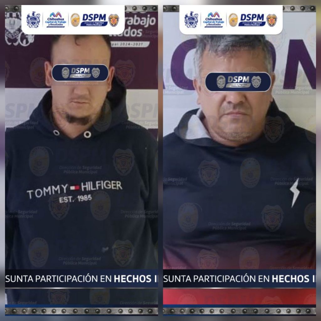 H. Cd. de Chihuahua.- Dos hombres que dijeron ser originarios de la Ciudad de México fueron detenidos tras un operativo de la Policía Municipal, luego de ser señalados como probables responsables de un robo con violencia cometido en un expendio de leche en la colonia Junta de los Ríos.