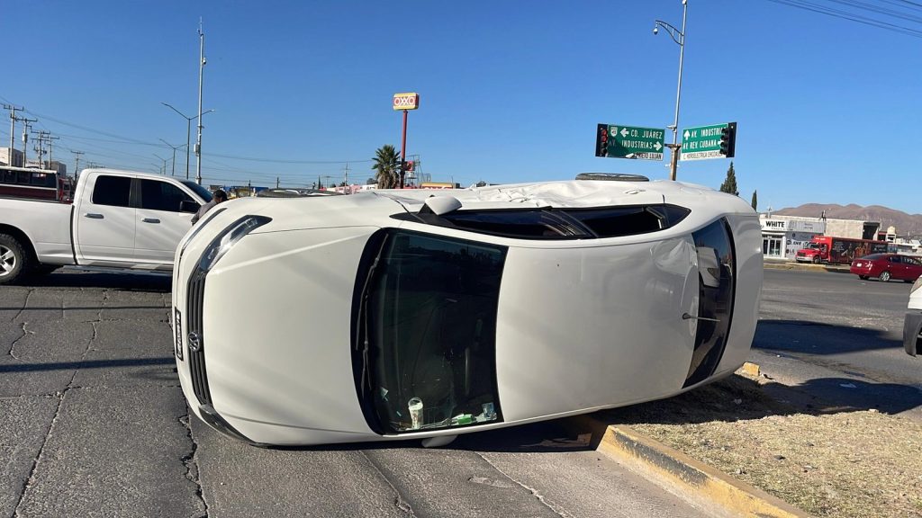 Un aparatoso accidente de tránsito se registró la tarde de este lunes en el cruce de la avenida Guillermo Prieto Luján y calle Chicoasén, al sur de la ciudad de Chihuahua, luego de que el conductor de un vehículo Volkswagen Vento presuntamente omitiera la luz roja del semáforo y fuera impactado por una camioneta Dodge Ram.
