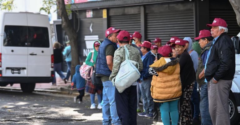 Desde las 7 de la mañana, decenas de camiones con simpatizantes morenistas se congregaron en la periferia del Zócalo, como la calzada de Tlalpan, el Monumento a la Revolución y Bucareli.