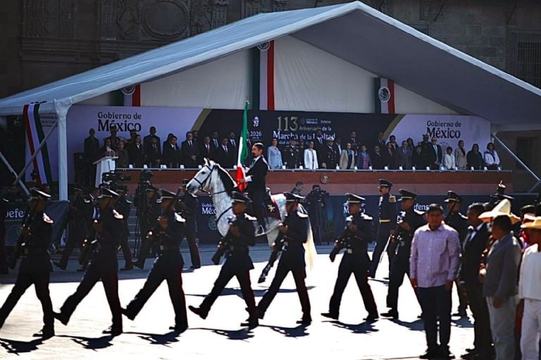 A la Jefa del Ejecutivo Federal, le refirió que “hoy que recordamos el acto de lealtad de los cadetes del colegio militar en 1913 y que lo conmemoramos en este Zócalo por ser el corazón cívico de la República que guarda la esencia de la unidad nacional las Fuerzas Armadas ratificamos a usted y a todas y todos los mexicanos que con valentía y lealtad seguiremos caminando con nuestra comandanta suprema, respaldando a las instituciones de la República y acompañado al pueblo de México”.