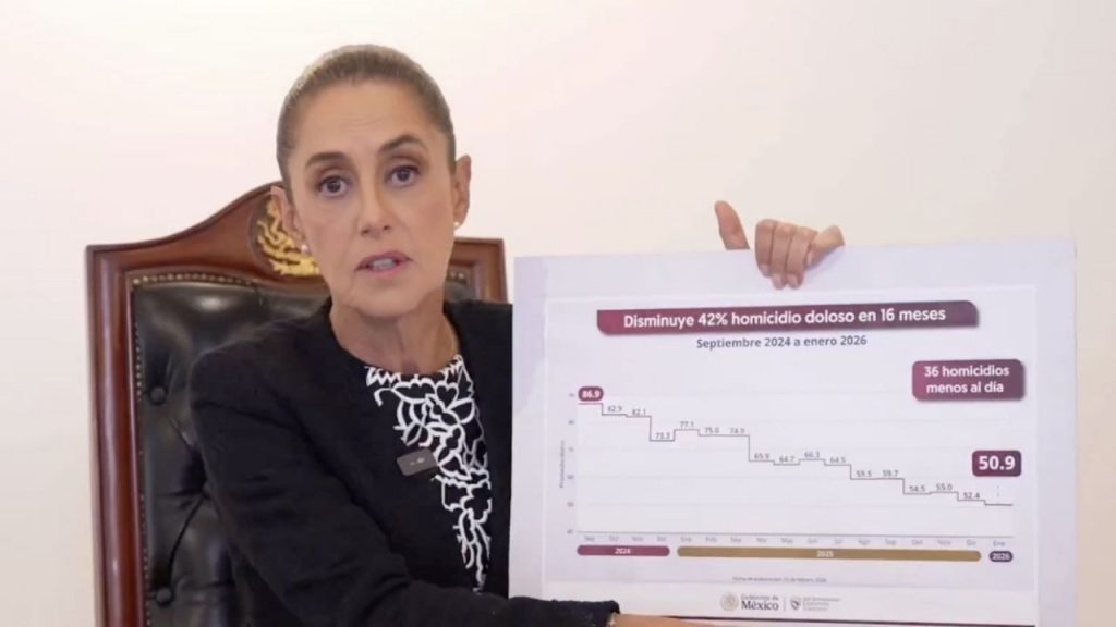 La mandataria federal destacó, ahora en un video en redes sociales, que desde 2016 es el enero más bajo en este tipo de delitos, incluidos los del sexenio anterior.