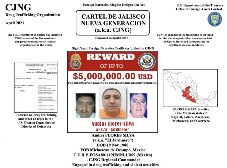 Un segundo probable sucesor es Audias Flores Silva, el Jardinero, quien es el jefe criminal de varias regiones de Jalisco, Michoacán y Nayarit.
