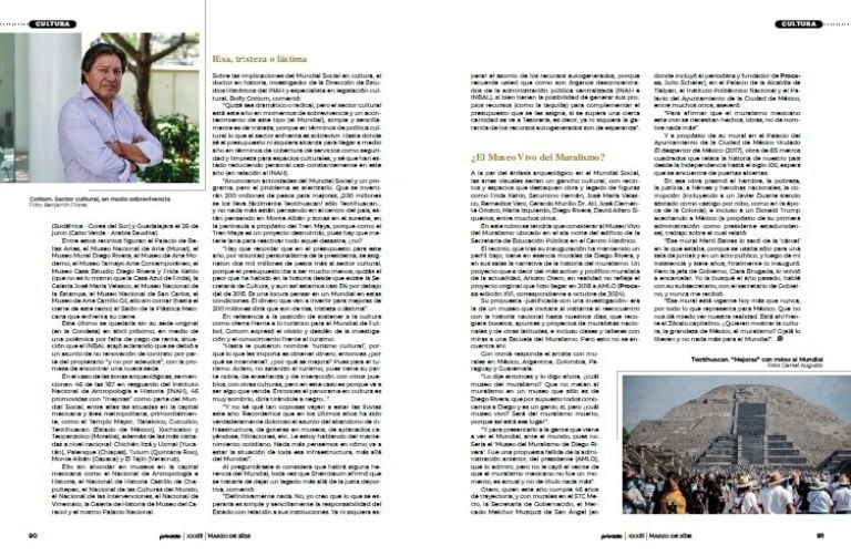 En el caso de Cultura, Claudia Curiel de Icaza aseguró en la conferencia mañanera del anuncio del Mundial Social que México se verá como una “potencia cultural”, y como parte de esto “se mejoran 12 museos y 46 zonas arqueológicas”, sin detallar los trabajos pertinentes. Además de exposiciones dedicadas al juego de pelota, visitas nocturnas, tres ediciones de ‘Original’ en Guadalajara, del 18 al 21 de junio; en Monterrey, del 19 al 21 de junio, y en la Ciudad de México, del 11 al 14 de junio.