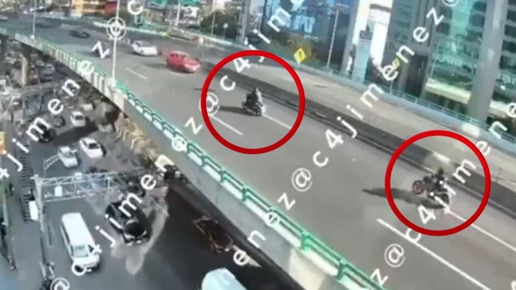 Las imágenes difundidas en redes sociales muestran a las motocicletas avanzando a velocidad sobre la autopista urbana mientras patrullas mantenían el seguimiento a distancia.