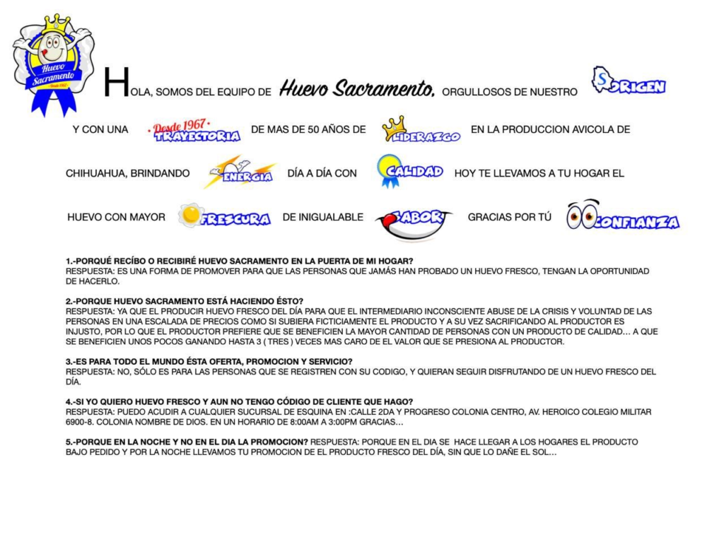 Agradecimiento y lealtad a Chihuahua, llevamos el huevo fresco a tu casa; Lanza Huevo Sacramento campaña publicitaria en la ciudad