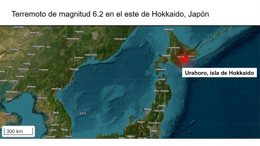 El temblor ha tenido lugar a las 5.23 horas y a una profundidad de 83 kilómetros en la parte sur del distrito de Tokachi, según ha indicado la Agencia Meteorológica de Japón (JMA), que le ha atribuido una intensidad de 5+ según su escala –que describe el grado de agitación en un punto de la superficie terrestre, con un máximo de 7– en la ciudad de Urahoro, a escasos kilómetros de la costa oriental de Hokkaido.
