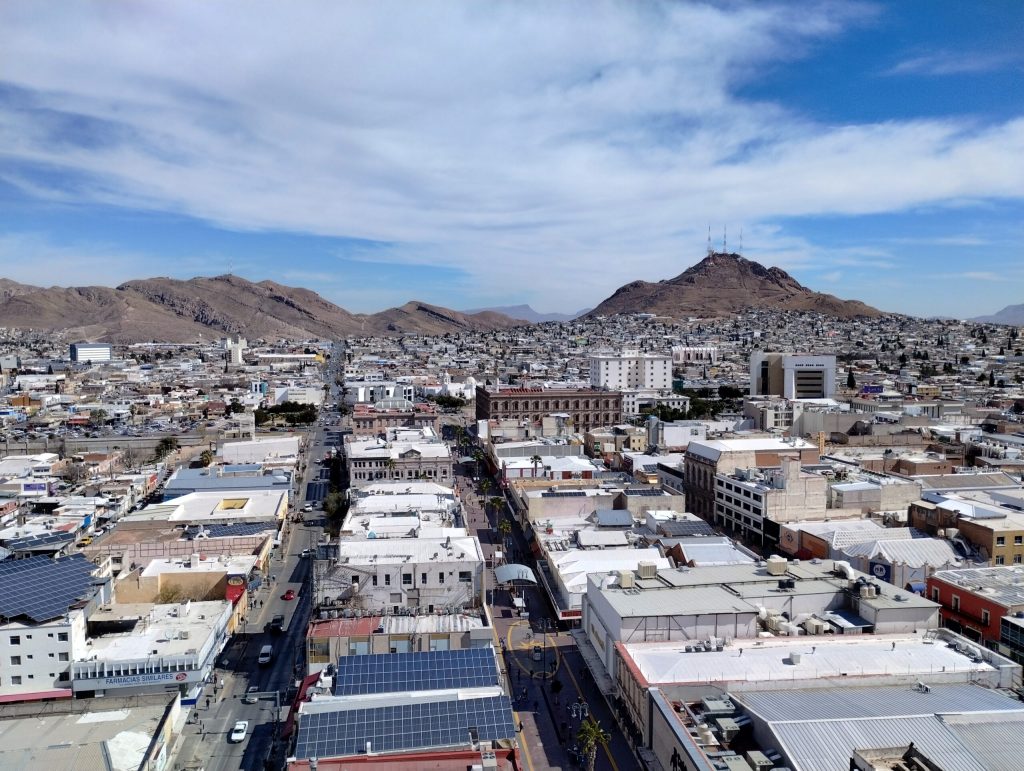 Chihuahua · Máx 34° / Mín 21° · Viento 5 km/h · Humedad 22% · Hora Chih: 09:42