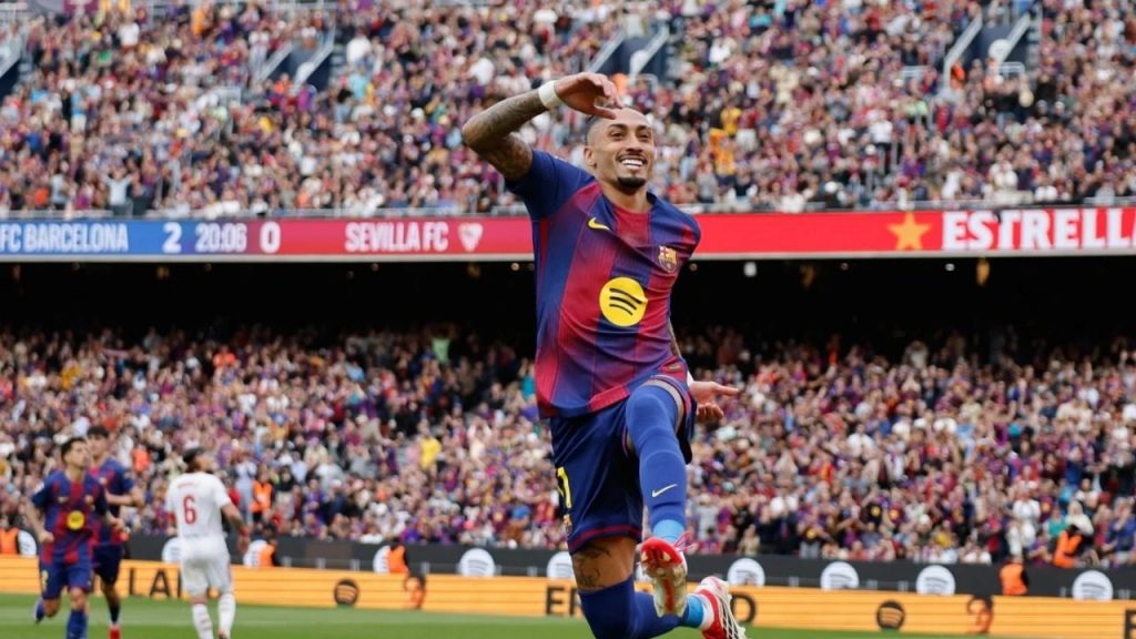 Raphinha anota triplete en victoria del Barcelona 5-2 vs. Sevilla y se mantiene como líder