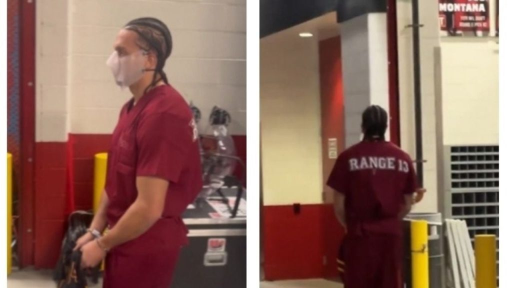 Como preso: Mack Hollins, receptor de Patriots, llega al Super Bowl LX descalzo y esposado de pies y manos