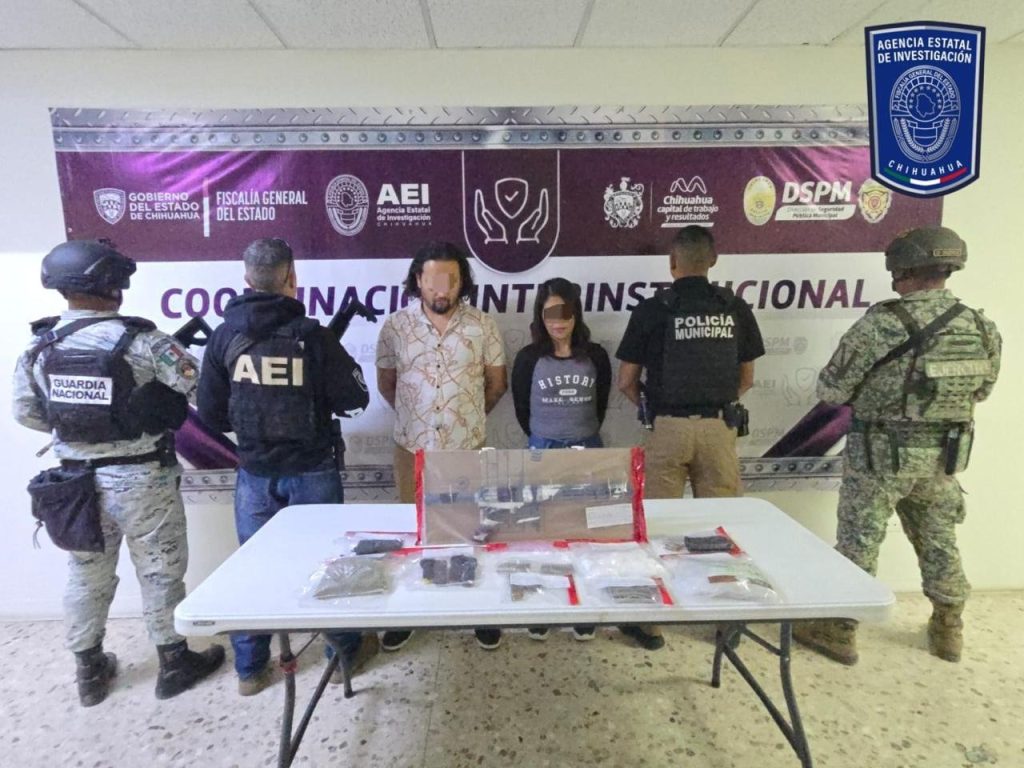 Detienen en flagrancia a un hombre y a una mujer en posesión de narcóticos y armamento